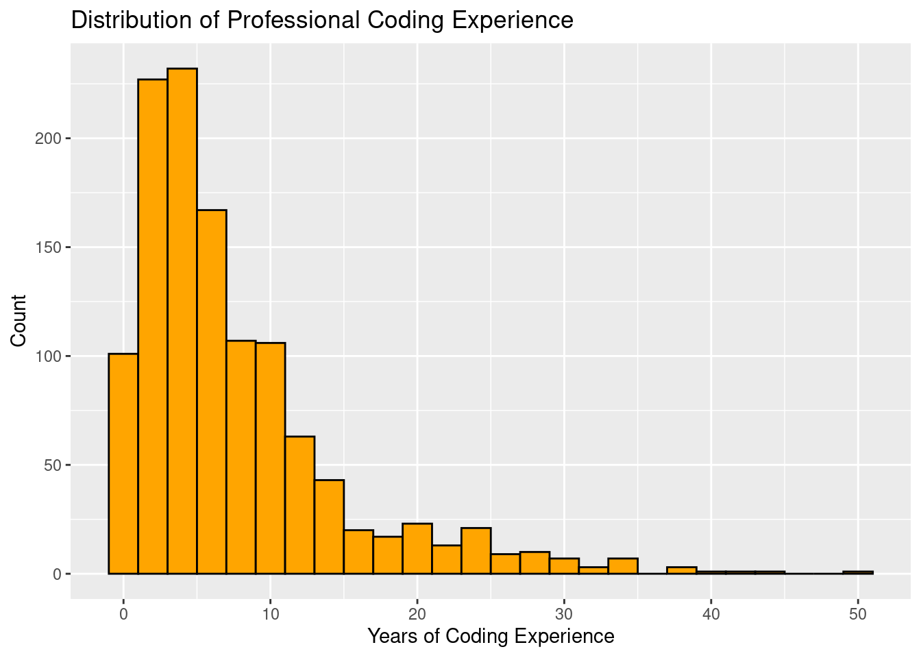 $ years_code_pro <dbl> 10, 5, 8, 17, 6, 20, 3, 7, 13, 10, 2, 12, 3, 19, 2, 1, 4, 5, 5, 2, 25, 30, 10, 4, 3…