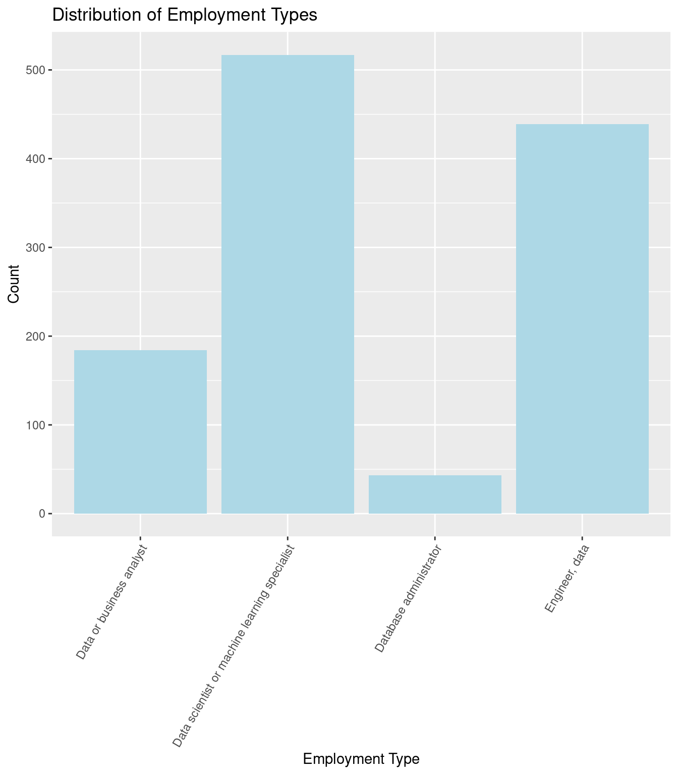 View(data_dev_survey)The Stack Overflow survey data stored in data_dev_survey includes 1,183 responses from professionals in the data and tech fields, with information on their employment, coding activities, education level, and technical skills. The dataset provides a comprehensive view of respondents’ experience levels, preferred programming languages, work environments, and AI perspectives. It captures various demographic and professional details, including their country of work, salary, and views on AI, making it a valuable resource for analyzing trends in the data science and tech professions.